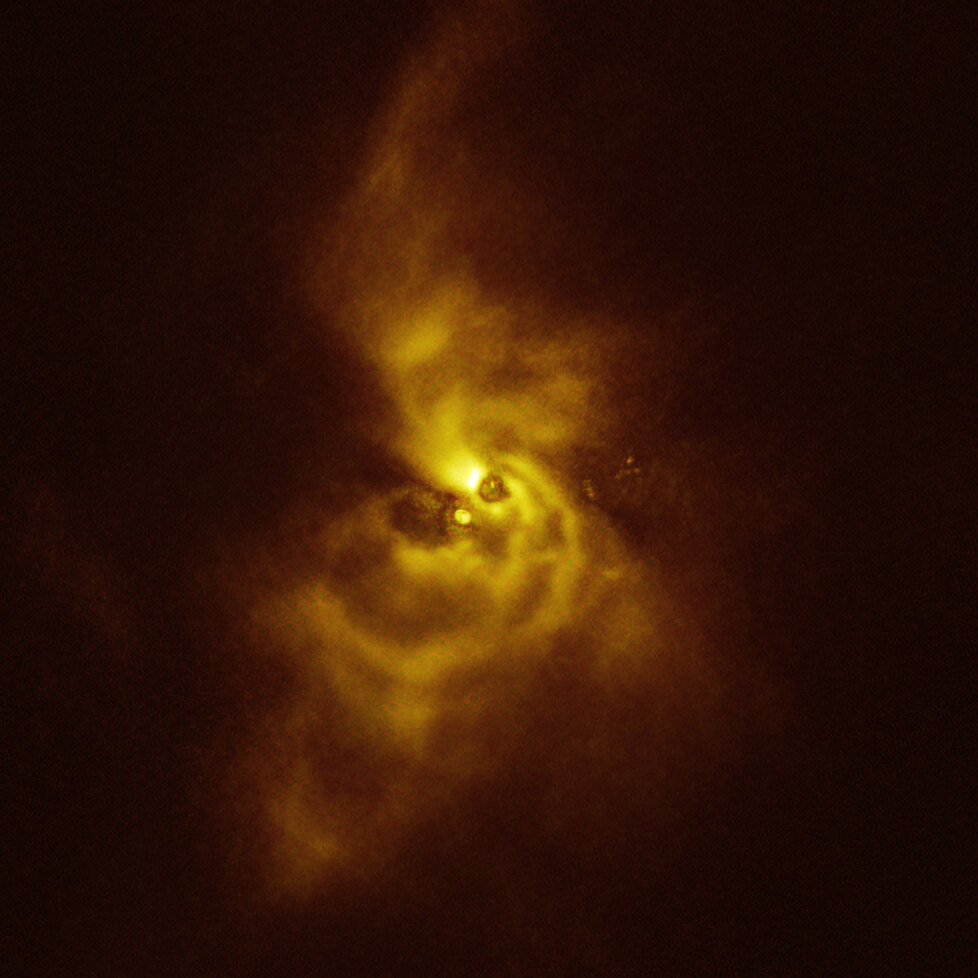 Este hallazgo motivó a los astrónomos a analizar las observaciones de archivo del mismo sistema realizadas con ALMA, del cual ESO es socio. Las observaciones del VLT sondean la superficie del material polvoriento alrededor de la estrella, mientras que ALMA puede examinar su estructura más profundamente. “Con ALMA, se hizo evidente que los brazos espirales se están fragmentando, lo que resulta en la formación de aglomeraciones con masas similares a las de los planetas”, dice Zurlo.